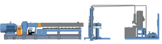該系統(tǒng)通常包括模頭,切粒小車,旋風(fēng)分離、振動輸送等。